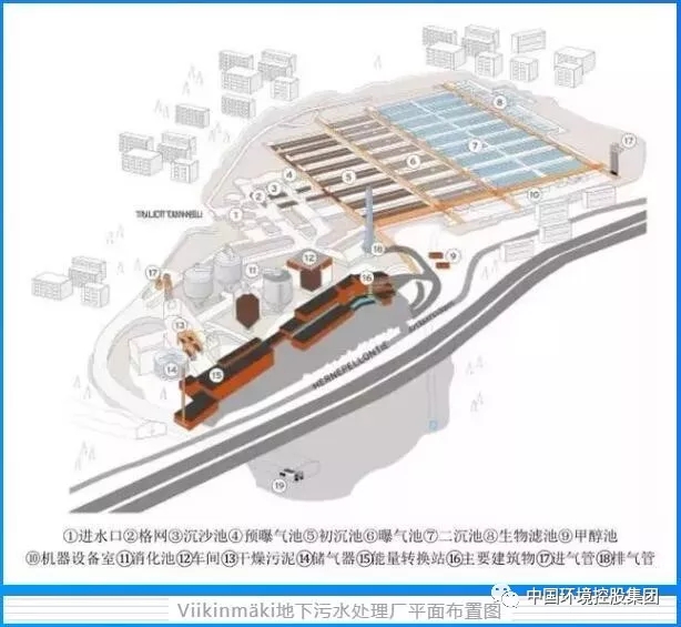 1932年,芬兰着手建造地下污水处理厂。Viikinmäki中心污水处理厂建在赫尔辛基市中心附近,于1986年在污水排放隧道的端点投入建造,厂址高于海面,处理后的污水靠重力通过隧道排放到芬兰湾的卡塔杰洛托岛,出水口位于水底20m深处,这个设计还可防止海水倒灌入处理厂。可以说,这是将水在地下进行“大清洗”的革命性开拓。