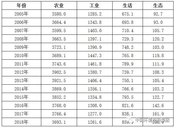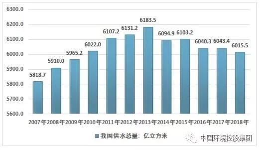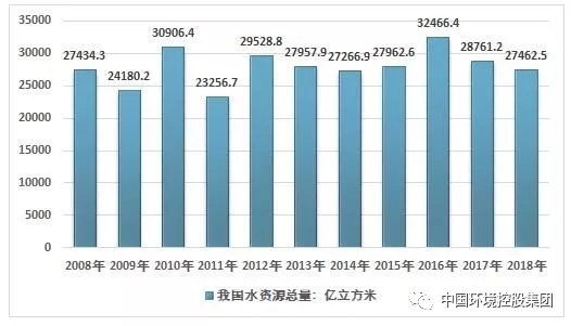 据有关部门统计:2018年,全国水资源总量为27462.5亿立方米,与多年平均值基本持平,但比2017年减少了4.5%。其中,地表水资源量26323.2亿立方米,地下水资源量8246.5亿立方米,地下水与地表水资源不重复量为1139.3亿立方米。中国水资源总量已持续2年呈下降趋势,水资源方面问题进一步突显。