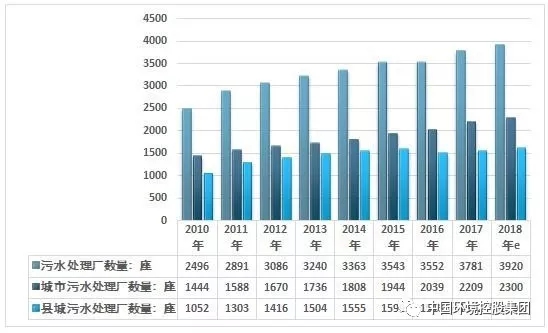 2017年末,中国县城共有污水处理厂1572座,比上年增加59座,污水厂日处理能力3218万立方米,比上年增长6%,排水管道长度18.98万公里。根据历年数据和规划进行测算,2018年县城污水处理厂数量会略有提升,达1620个,污水厂日处理能力达到3300万立方米/日左右。