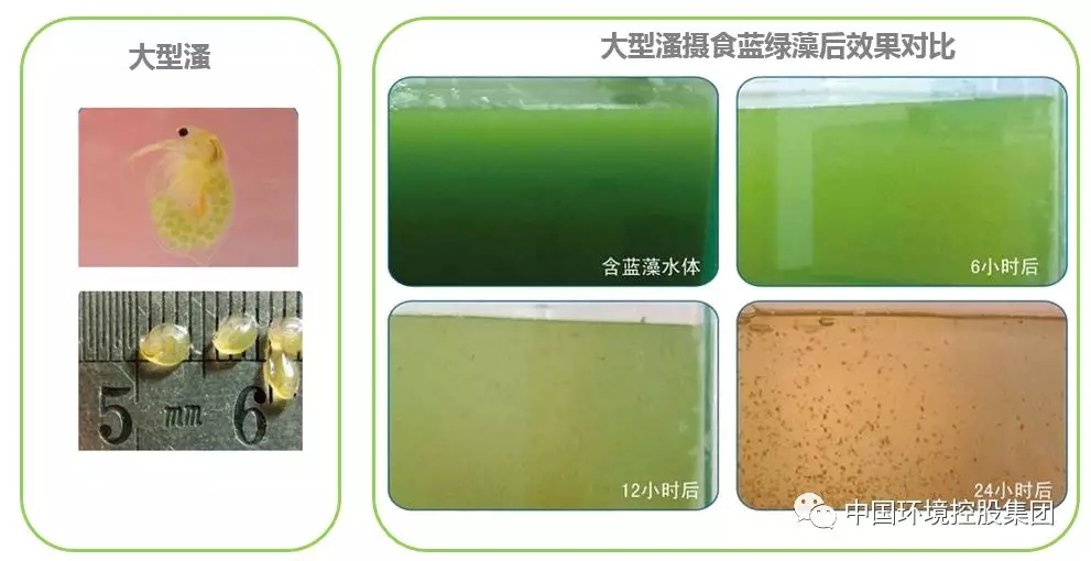 ① 藻类被大型溞摄食后,藻类有机物质被同化,避免了化学药剂或生物药剂控藻后产生的藻类腐化污染问题;