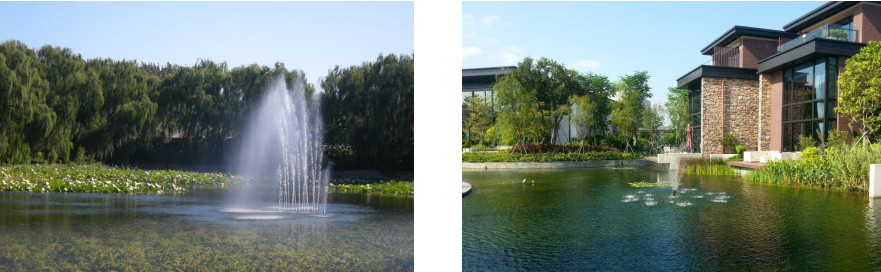 喷泉曝气增氧系统是生物—生态污染水体修复技术中增加水体中溶解氧非常重要的一环,也是微生物繁殖、挂靠、激活的基本生存条件。通过喷泉促进上下层水体对流,增加水体于空气接触面积、搅动力度,向水体中注入足够的溶解氧,可以使断开的生物链得到有效的修复。
