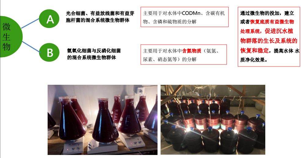 公司于广东湖南建立研发实验室、水生动植物育种/培植/优选/驯化/改良研发基地、“大型溞”、有益微生物菌种培育基地,占地千亩。具备大型溞培育、水草模块化水下立体培养与研发,并配有专人专员研发、培育。由此可针对不同的地域、气候、地理等条件,做出水生动植物的合理选择与规划,从而保证生态系统构建的合理性及稳固性,进而保证水体治理的有效性。并且和清华大学、中国环境科学院、长江科学院建立科研合作关系。