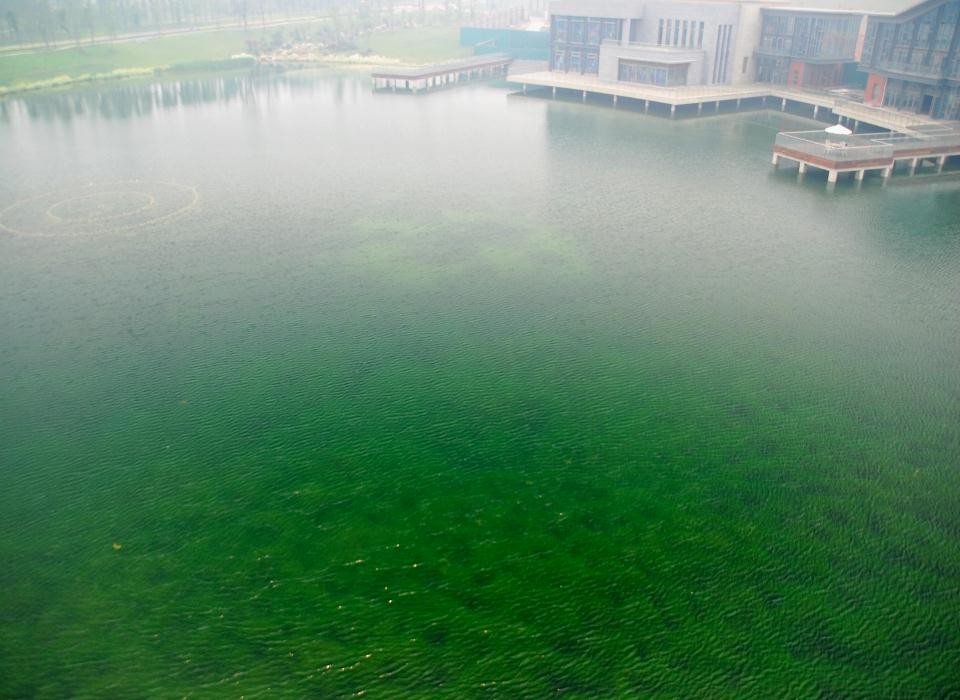 项目情况:平均水深2.5m,面积25000 m2,自然软底,补给水为雨水、河道水,效果保持至今,水质达到地表